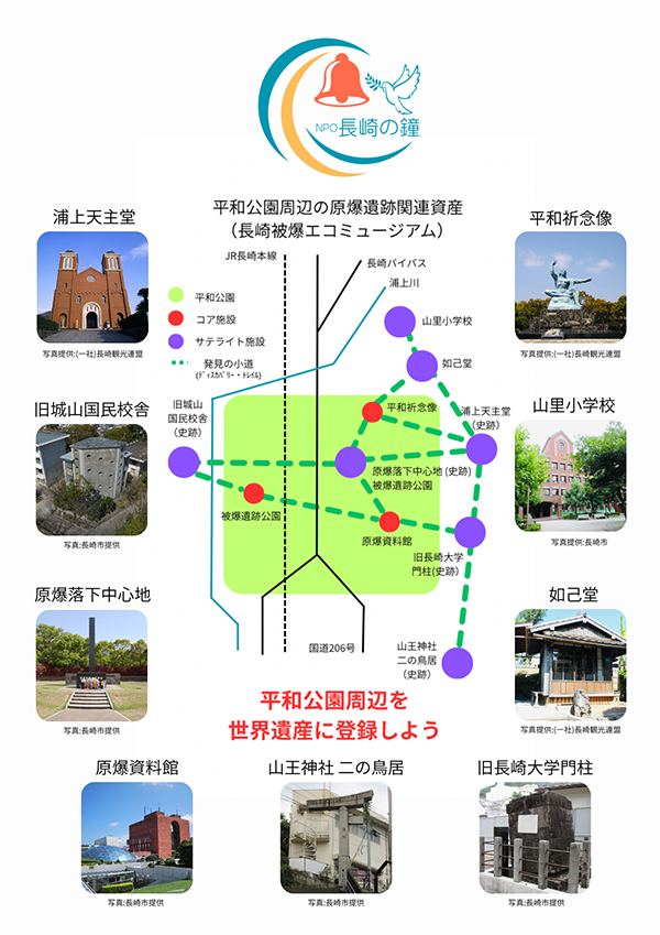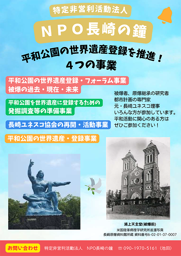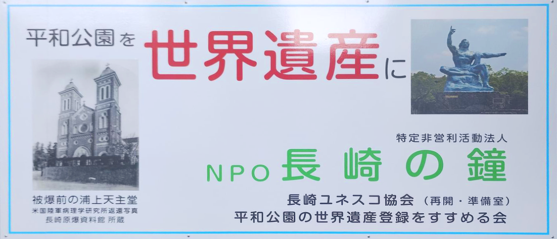 「NPO長崎の鐘」は、慰霊地・陸上競技場の保全を含め「平和公園と関連史跡」の「世界遺産登録」を目指していきます。